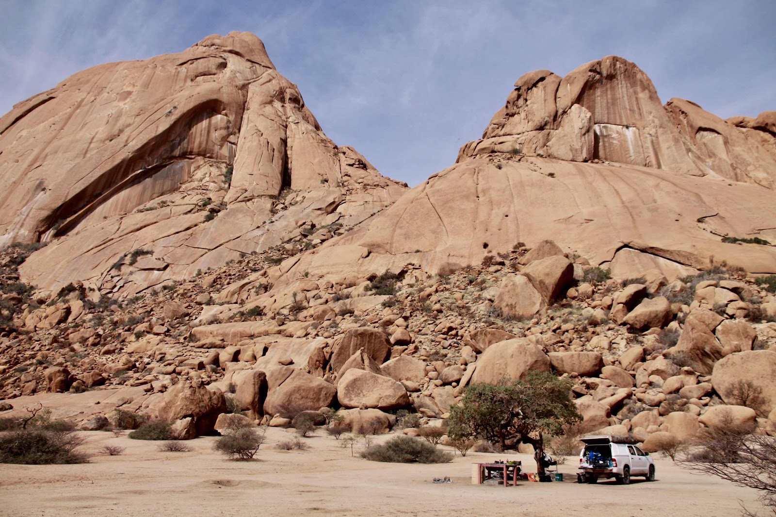 Nun ist auch schon Weihnachten herangerückt. Am Morgen von Heiligabend haben wir so richtig eingekauft. Alles was wir gerne Essen wollten, egal wie teuer wurde in den Einkaufskorb gelegt. Das war dann auch schon das Geschenk was wir uns geschenkt haben. Heiligabend haben wir auf einem Campingplatz alleine verbracht. Es war eher unsere Zwischenstation auf dem Weg zum Brandberg, aber es war dennoch sehr schön. Wir kochten und aßen und später telefonierte noch jeder. Aber so richtig traurig war keiner, zum Glück. Die zwei Weihnachtsfeiertage verbrachten wir am Brandberg, welcher ebenfalls zu unseren Highlights gehört. Es war sehr beeindruckend. Wir besuchten die „White Lady“, die gar keine Lady war, sondern ein Schamane der vom Staub weiß war, sonnten uns am Pool und gingen im Gebirge wandern oder eigentlicher eher „krackzeln“. Wir fuhren mit dem Auto durch die Wüste zur Spitzkoppe, welches auch wieder nur schön war. Genauso wie die Spitzkoppe. Unser letztes absolutes Highlight. Die Spitzkoppe ist der älteste Berg Namibias. Dort sahen wir mit abstand den schönsten Sonnenuntergang und den schönsten Sternenhimmel. Wir sind sogar extra auf einen kleinen Felsen geklettert mit unserem Wein und chips. Der Campingplatz ist mehre Kilometer groß und es gibt kein Licht und kein fließend Wasser außer bei der Rezeption, ebenfalls eine Erfahrung wert gewesen.